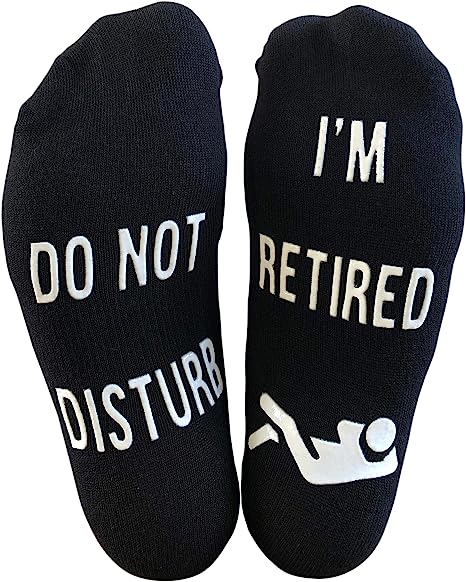 ‘Do Not Disturb, I’m Retired’ Funny Full Length Lounge Socks – Great Gift For Retirees / Colleagues / Office Leavers